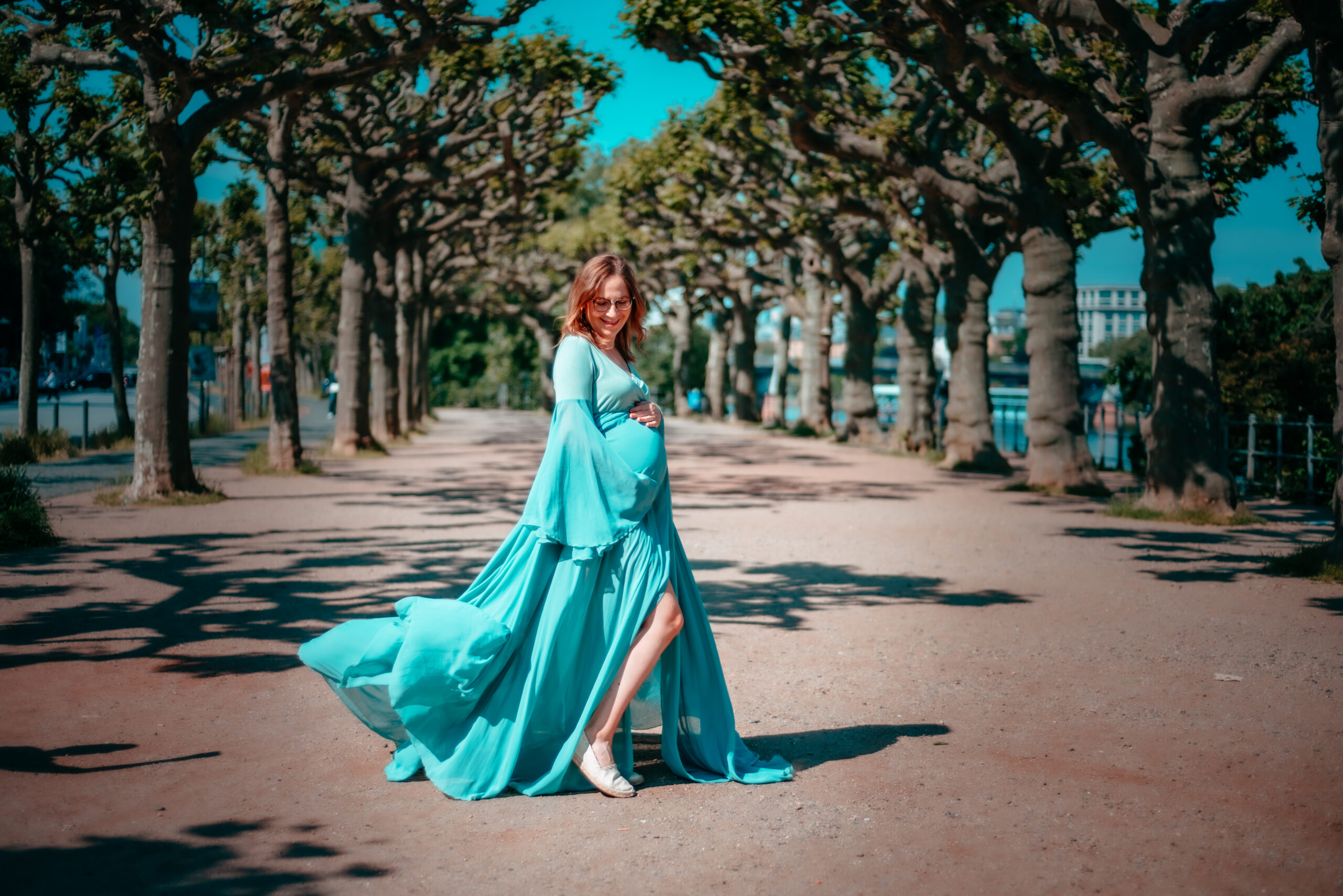 Tyrkysové rozevláté šaty